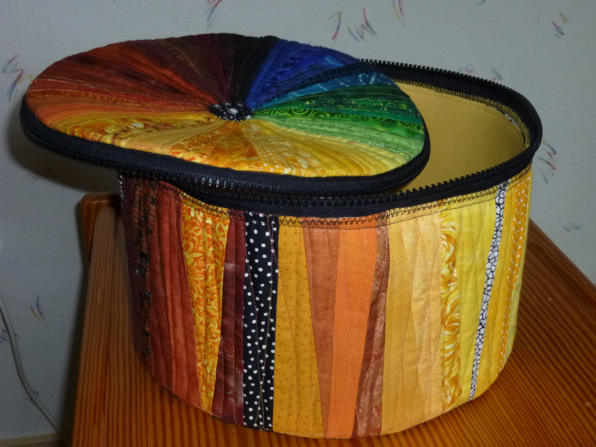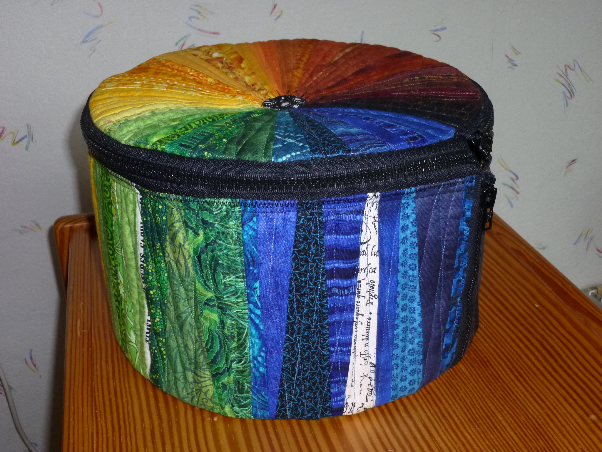 Aus den vielen "Abfällen" beim Nähen des „Der Grund“-Quilts habe ich u.a. eine "Hutschachtel" genäht, ohne Hut, ohne speziellen Nutzen, aber mit Spaß an der Freud ;-).