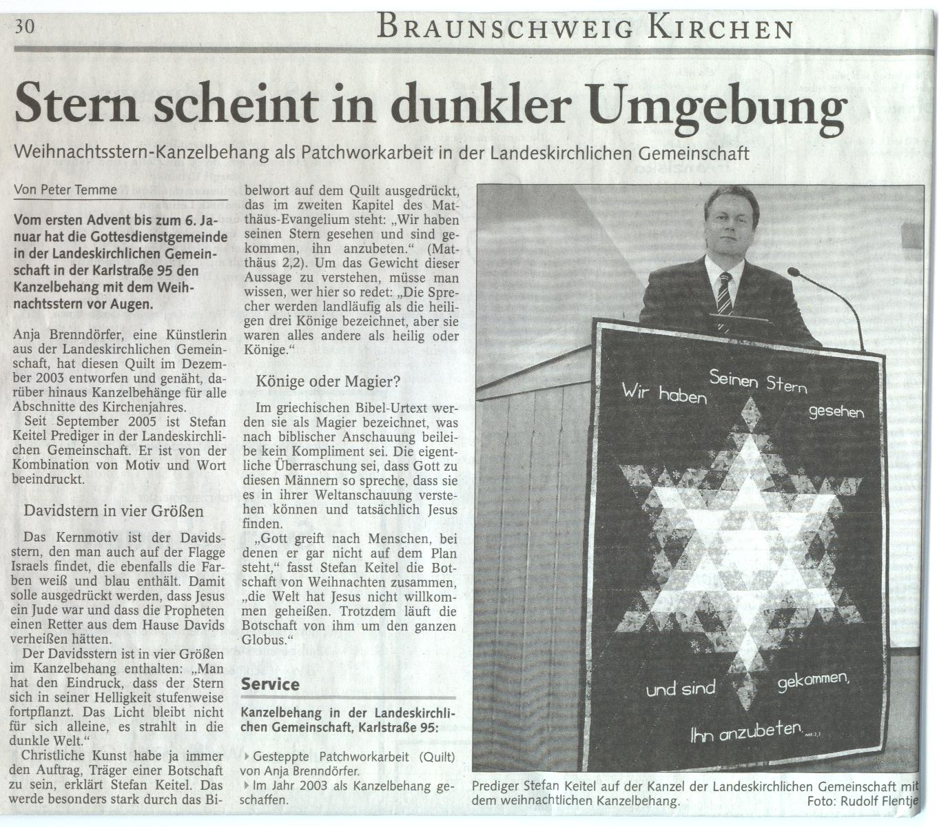 musste. An diesen Gedanken anknüpfend, ist im Stern des Kanzelbehangs in 4 verschiedenen Größen der Davidsstern