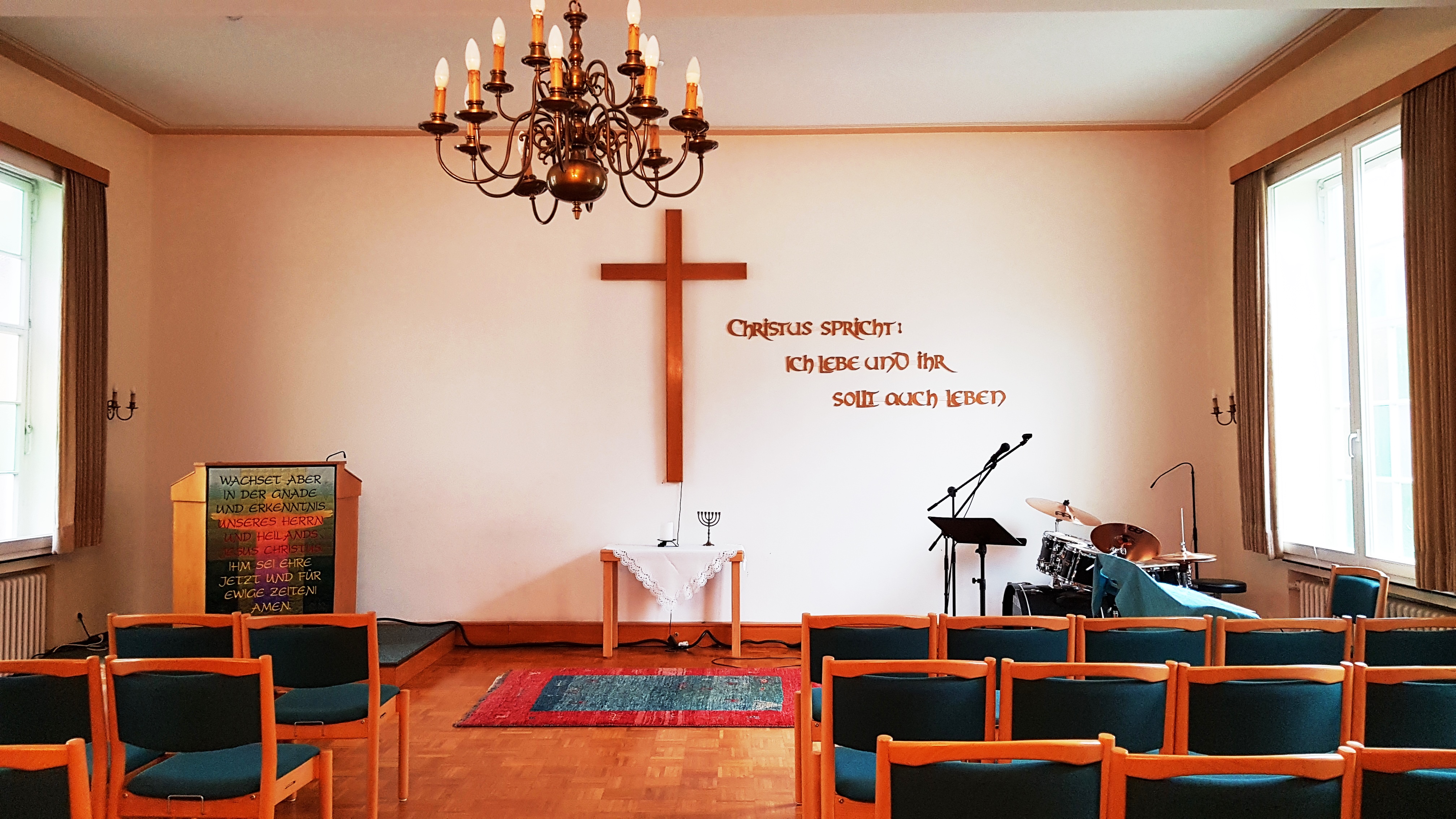 - Text: Eine der 4 sich dort treffenden Gemeinden (nämlich ihr!) hatte sich einen Bibelvers mit „Jesus“ und „Gnade“ gewünscht.